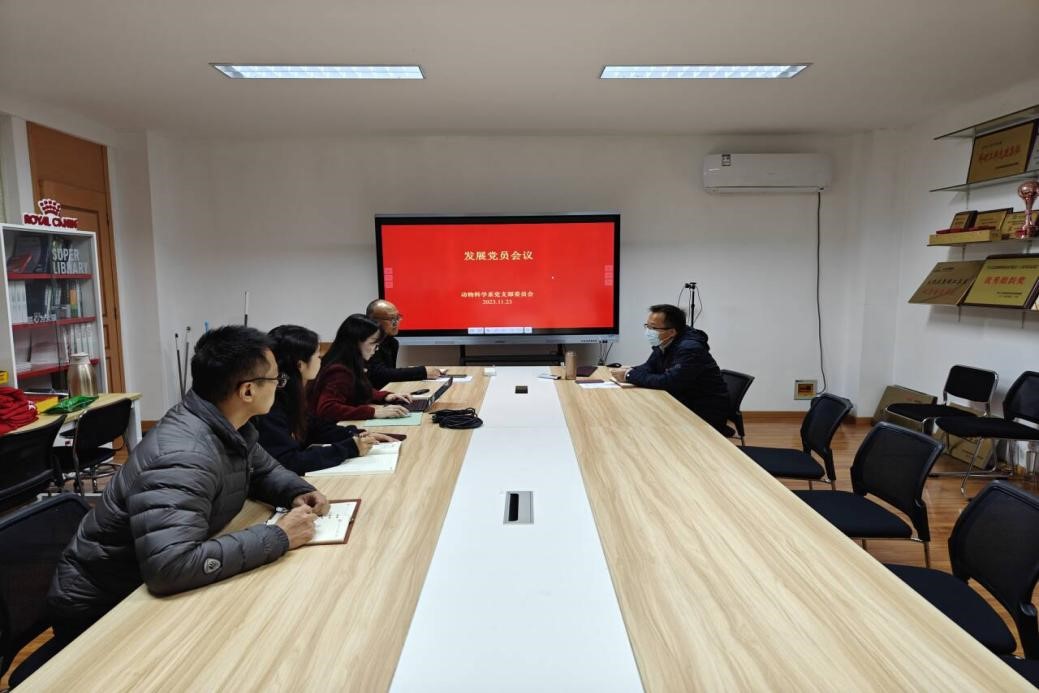 11月24日,动物科学系党支部支委委员在畜牧兽医学院307召开支委会,讨论确定任希艳同志为发展对象事宜。本次会议由支部书记王煜恒主持,副书记宋春雷、组织委员杜婕、宣传委员马思思与统战及纪检委员桂红兵参加。