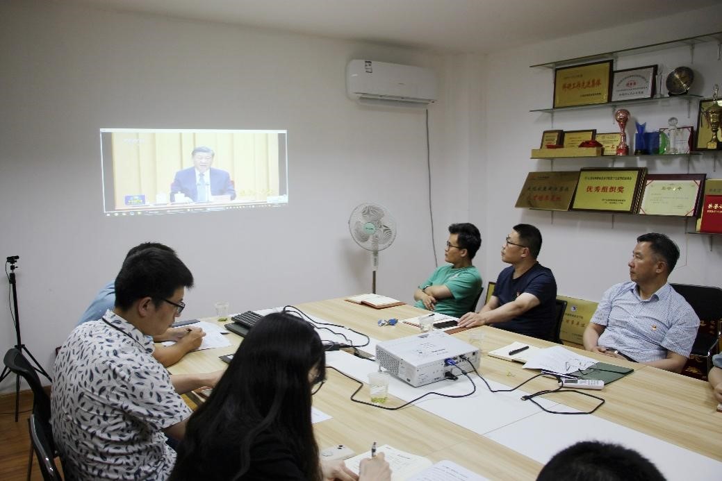 本次会议首先由周闯同志领学《习近平新时代中国特色社会主义思想专题摘编》;其次,开展“牢记嘱托、感恩奋进、走在前列”大讨论,讨论开始前,全体党员集体观看视频,随后每位党员教师联系自身教学、科研或管理工作发表了意见,并对后续工作积极表态。潘永圣对同志们的发言做了点评,并对党员教师自身及学院的发展前景提出指导性意见。