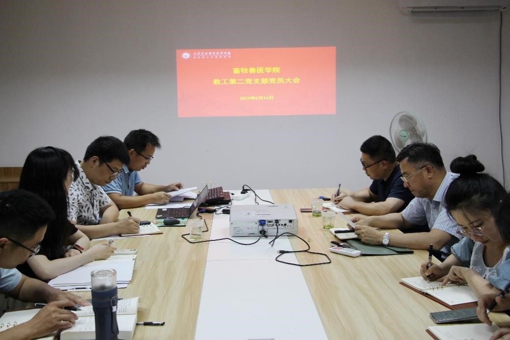 6月14日,畜牧兽医学院教工第二党支部在三楼会议室307召开全体党员大会。本次会议由支部书记王煜恒主持,江苏农林职业技术学院党委副书记、校长潘永圣,畜牧兽医学院院长汪善锋及教工第二党支部全体党员参加本次会议。
