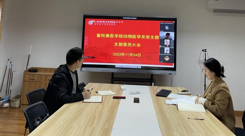 为响应党的号召,为党的队伍注入新鲜血液、注入新的活力,进一步加强教师党组织的建设,我院动物医学系党支部于2023年11月24日10:00在畜牧兽医学院牧医楼三楼会议室召开党内外群众座谈会和支委会。党内外群众座谈会由支部书记刘国芳同志主持召开,参加此次会议的有9名正式党员和1名群众,会上大家一致认为龚珉玮同志政治上积极要求进步,表现出色;工作上一丝不苟,关心同志,建议将其列为发展对象。