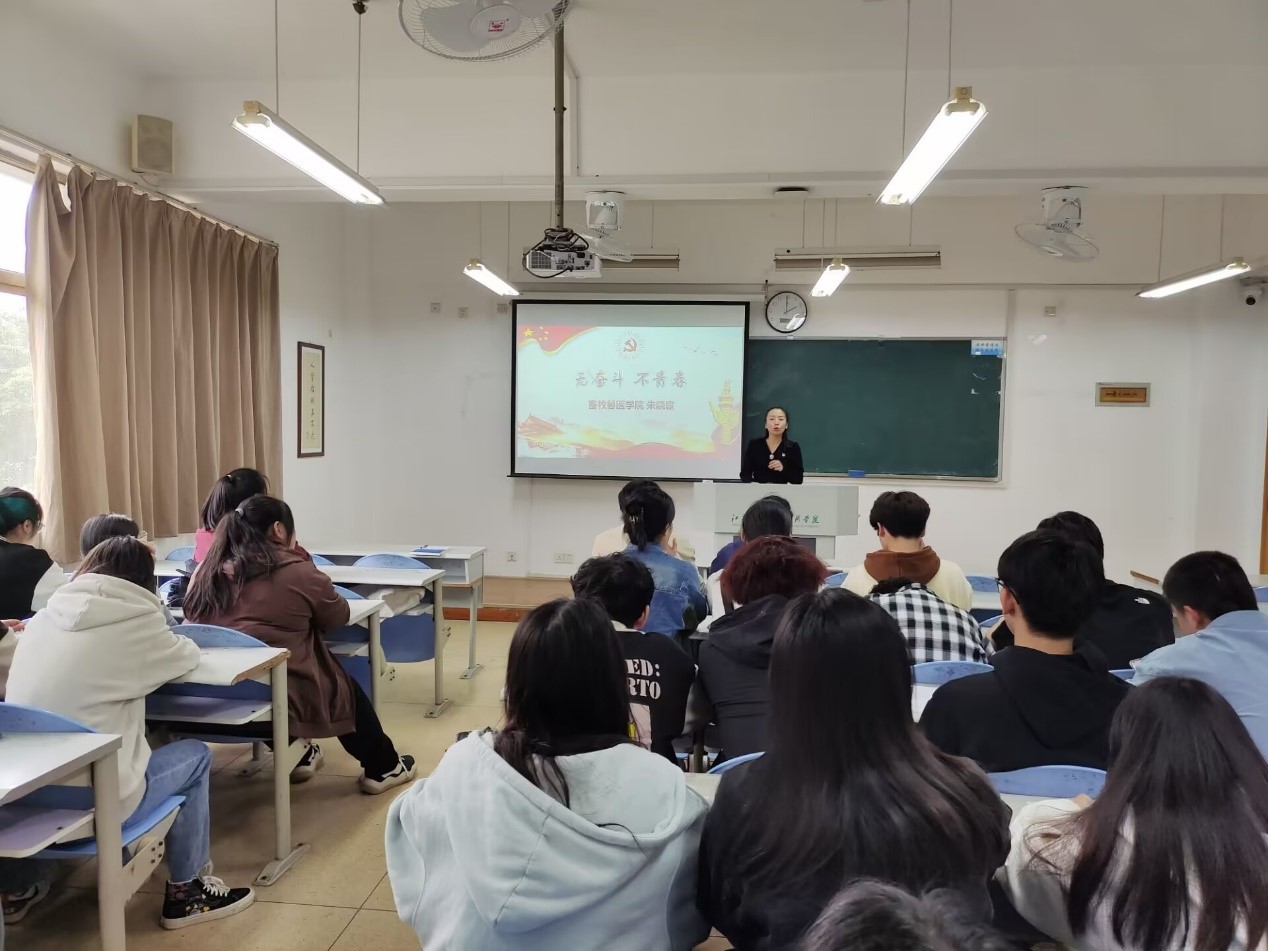 5月23日,畜牧兽医学院党总支学生支部书记朱晓宦开展主题为“无奋斗 不青春”的主题党课,支部全体党员、预备党员、入党积极分子等参加了此次党课。