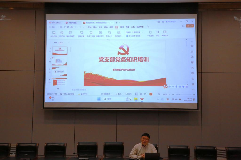为进一步提升学生支部党建工作规范化水平,提高支部师生理论素养和党务知识实操能力,推动学生党建工作不断上台阶,2月28日畜牧兽医学院学生党支部开展书记讲党课之——党务知识培训活动。学生党支部书记许俊齐主讲,支部党员、各团支部团干部、积极分子代表等参与了此次党课活动。