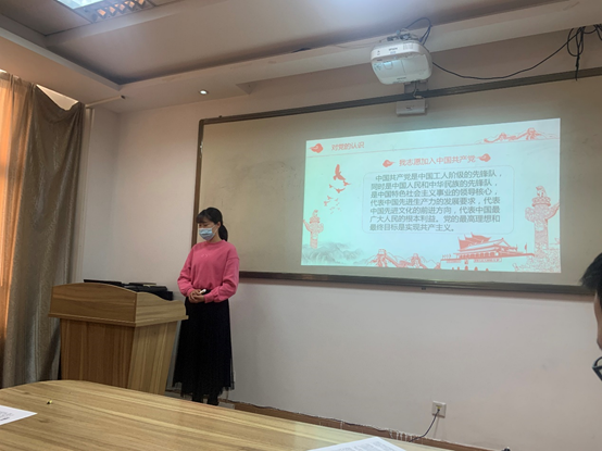 会中,严格按照入党组织发展程序有序进行:一、集体讨论了发展对象孟慧同志的入党问题;二、孟慧同志分别从个人情况、入党动机、对党的认识、个人不足和下一步计划等几个方面进行了PPT汇报,入党介绍人葛国君、刘国芳分别进行了发言讲话;三、支部组织委员王金奎报告孟慧同志的审查情况;四、与会的所有正式党员发表意见,进行了无记名投票,一致同意接收孟慧同志为中共预备党员。之后,支部宣传委员徐云明代表支委会宣读支部大会决议。最后,支部书记杨剑波对预备党员表示祝贺,党总支书记葛国君向预备党员提出意见和要求:希望孟慧同志牢记入党誓词,认真履行党员义务,戒骄戒躁,在工作中勇于奉献,发挥先锋模范作用。