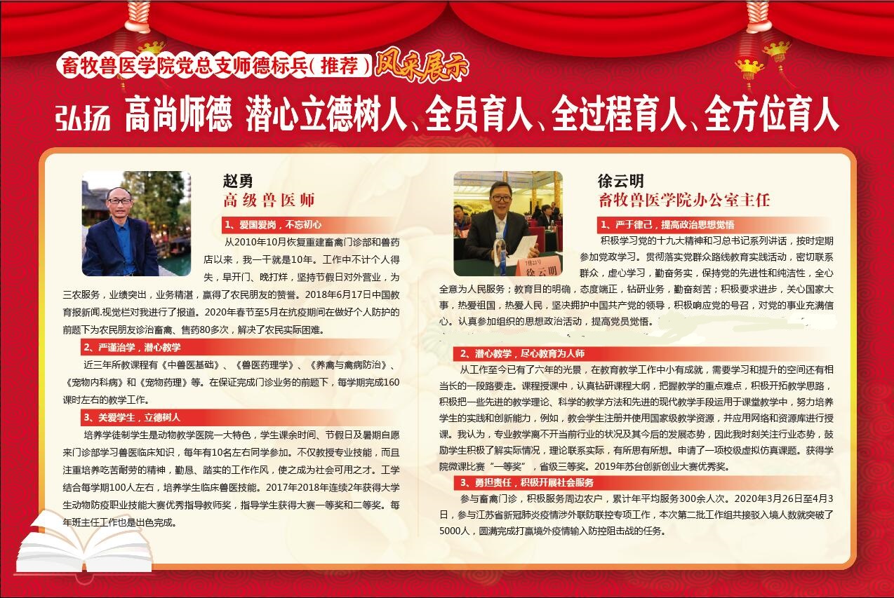 畜牧兽医学院党总支师德标兵(推荐)风采展示