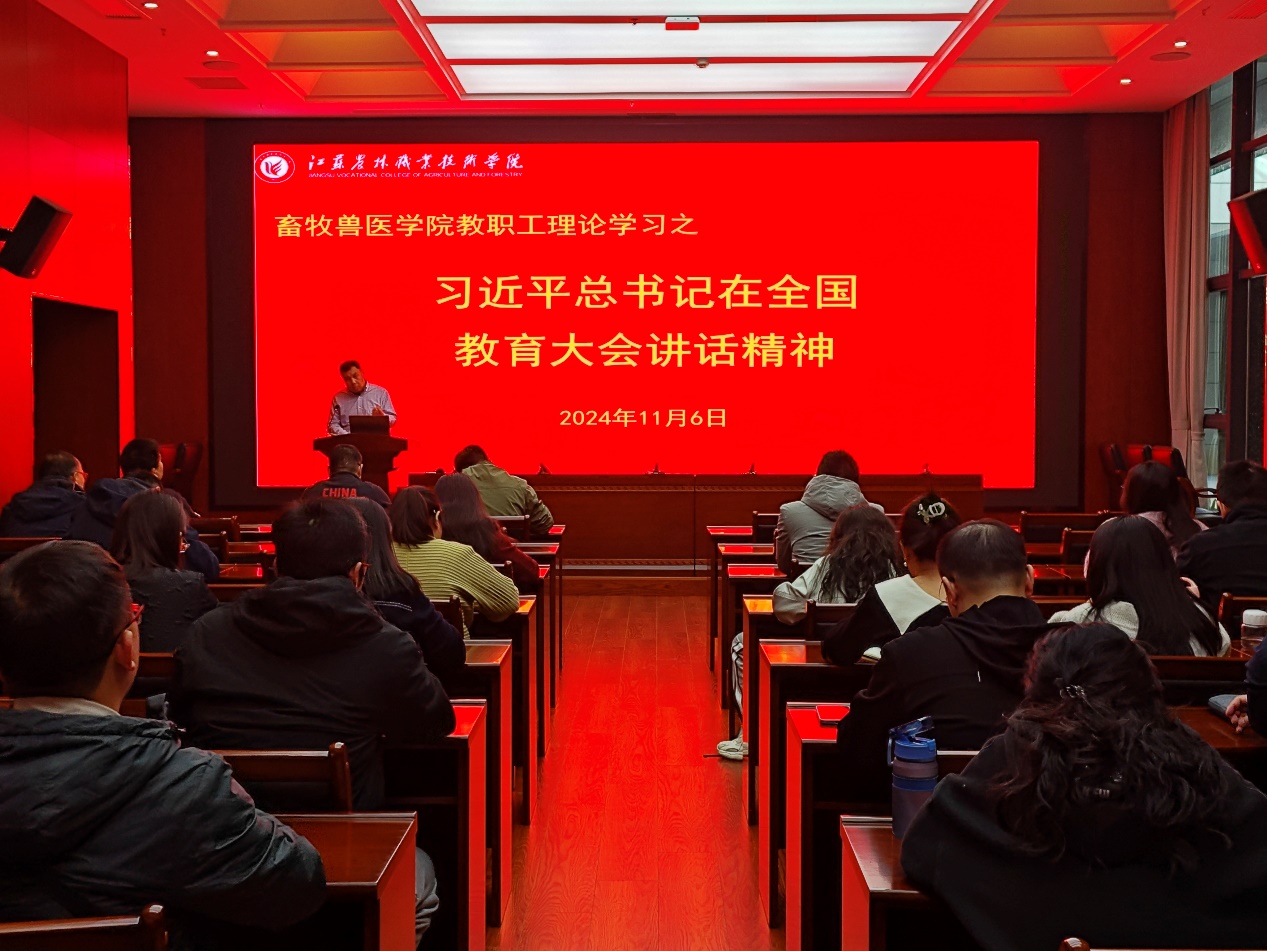 11月6日,畜牧兽医学院在大学生活动中心101召开教职工理论学习会,专题学习习近平总书记在全国教育大会上的讲话精神。会议由畜牧兽医学院党总支书记刘庆新主持,全体教职工参加会议。
