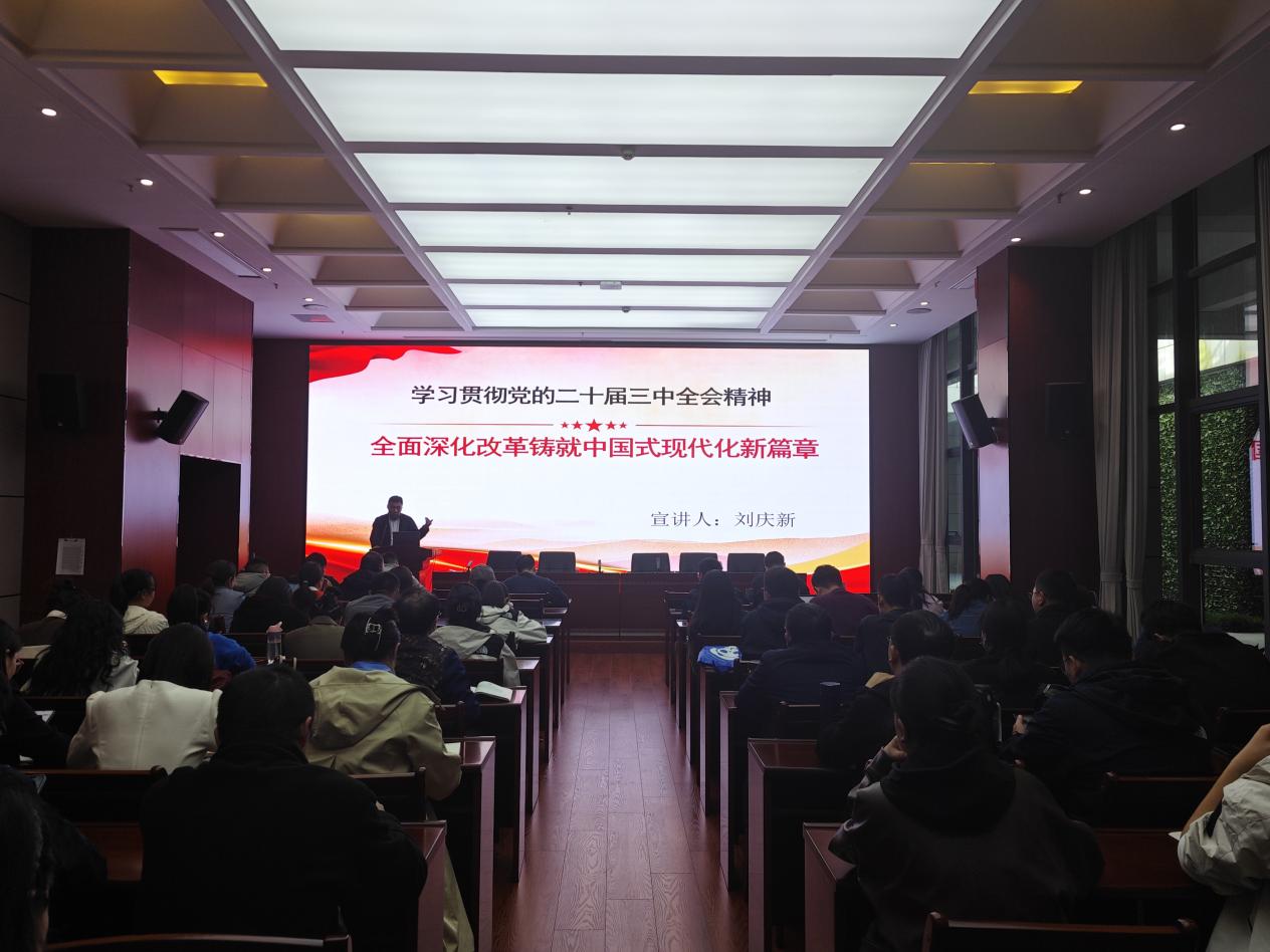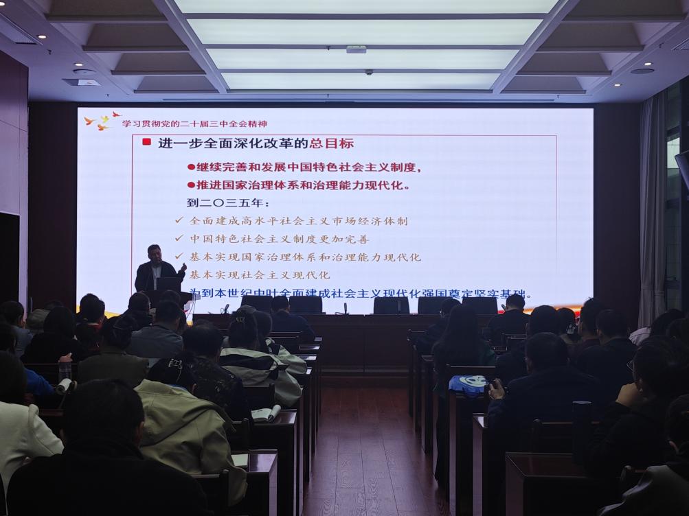 会上,刘庆新围绕历届三中全会回顾、二十届三中全会的总目标、七个“聚焦”以及重要意义等方面,阐释了全面深化改革是中国式现代化发展的根本动力,并激励与会教师,不断探索职业教育教学改革的新方法,推动职业教育高质量发展。