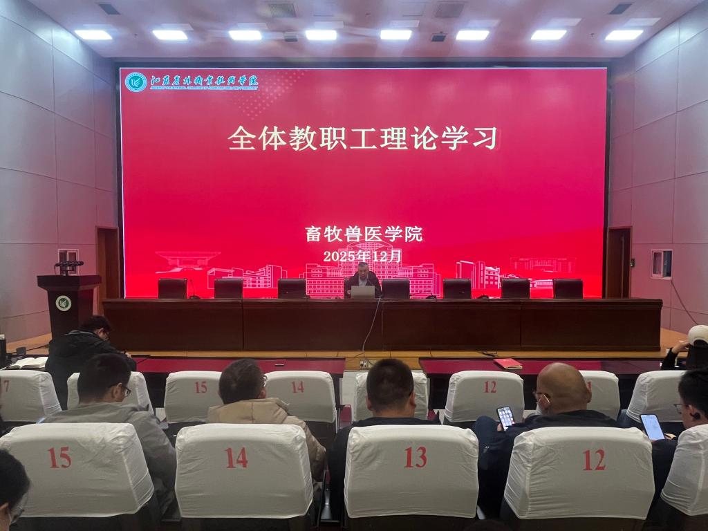 12月10日下午,畜牧兽医学院在图书馆报告厅召开12月份教职工理论学习会,会议由党总支书记刘庆新主持。